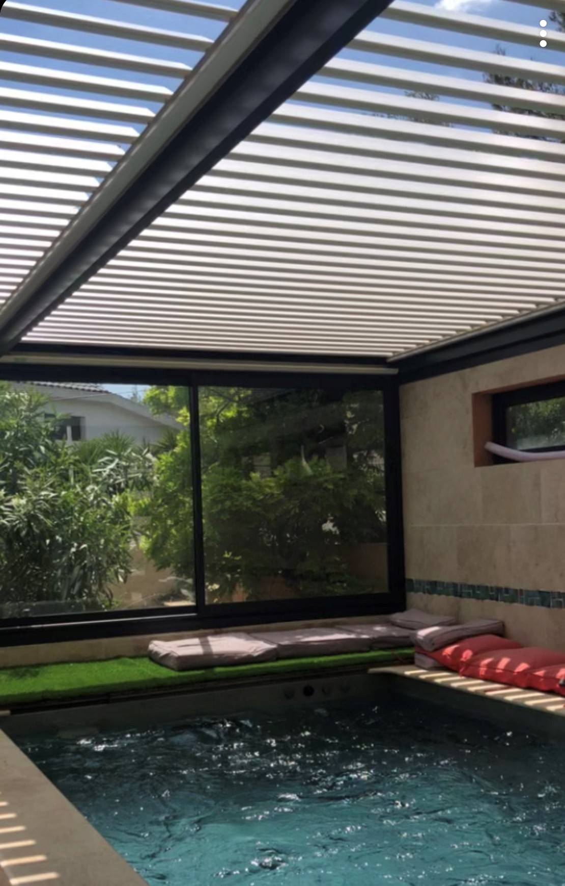Sous la pluie ou en plein soleil, la pergola bioclimatique est un havre de paix.