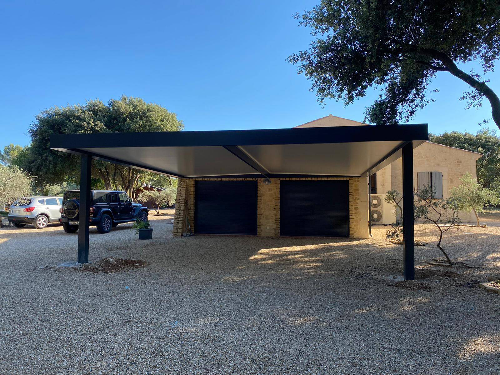 Notre carport Cauchi Design en aluminium protège efficacement contre les intempéries en offrant une couverture solide pour votre véhicule.