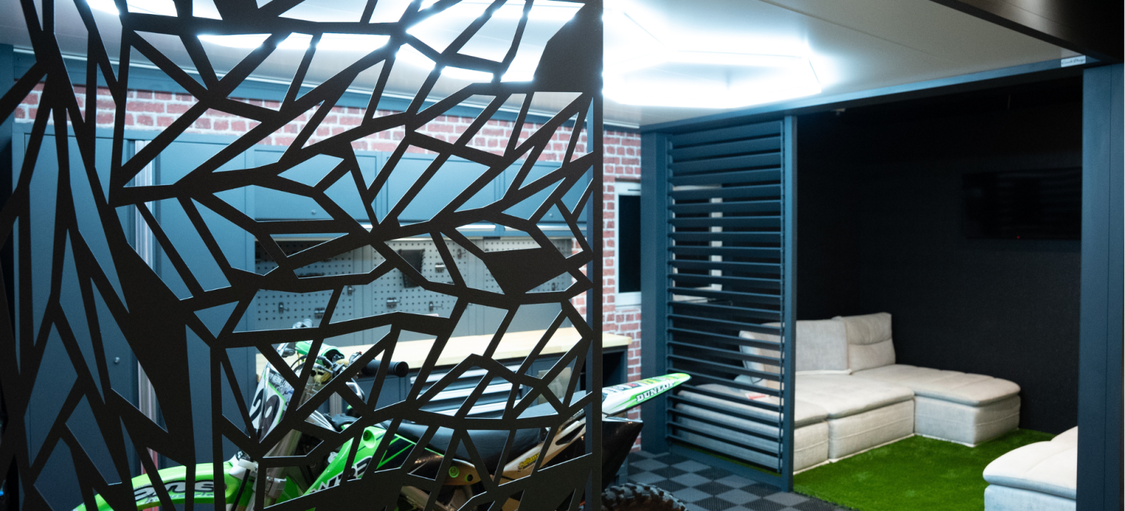 Pour ajouter une touche de design et garantir plus d’intimité, nous avons installé des claustras en aluminium avec découpe laser (1000 x 2600 mm) en RAL 7016 (Gris anthracite), un choix idéal pour allier esthétique et fonctionnalité.