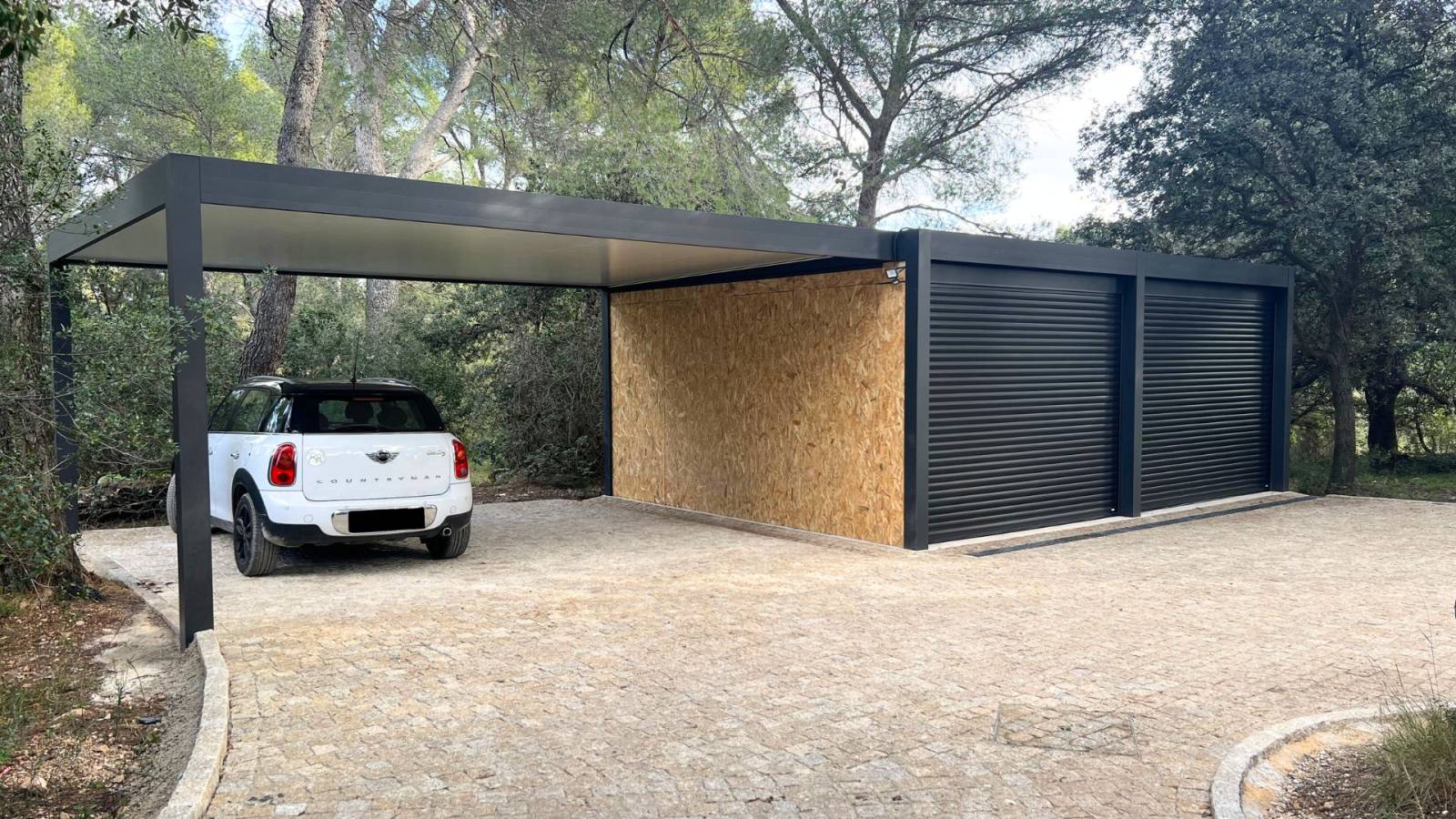 - Porte de garage intégrée : Transformez votre carport en garage fermé en ajoutant une porte sectionnelle ou coulissante, assurant une sécurité renforcée pour vos véhicules et équipements.