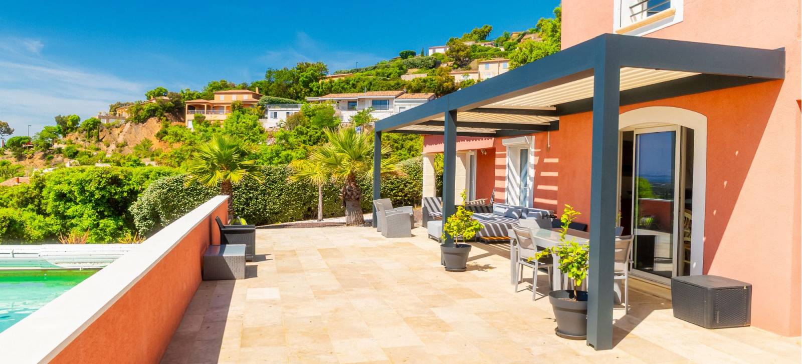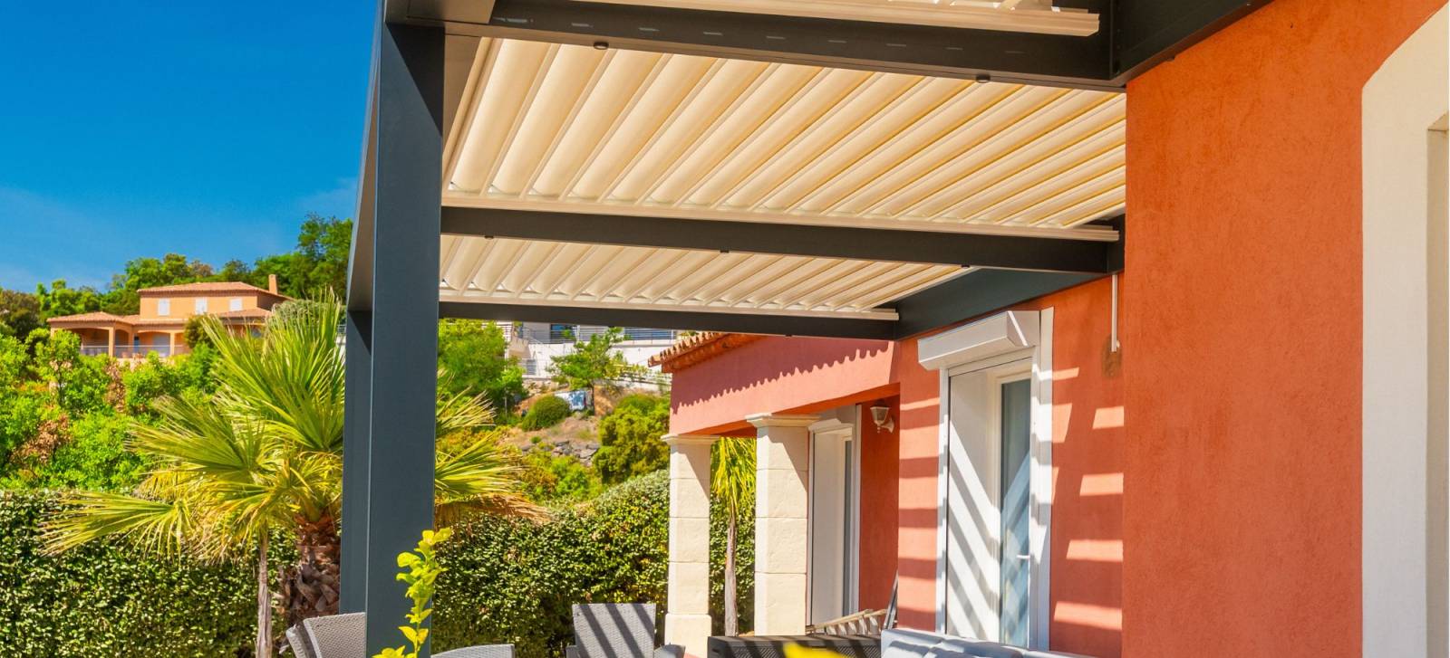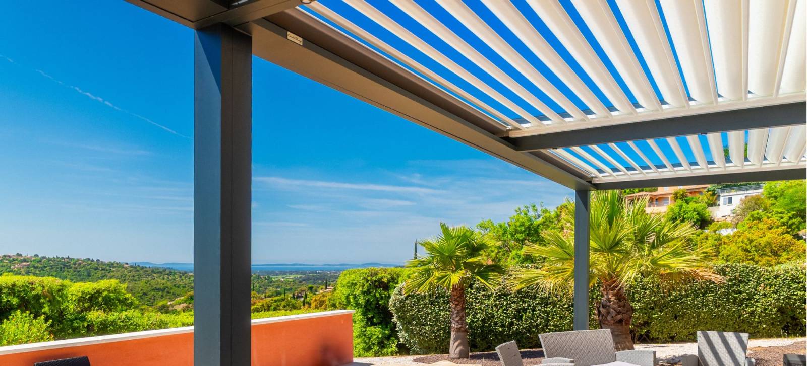 Notre dernière réalisation à La Londe-les-Maures illustre parfaitement cette approche, avec une pergola bioclimatique sur-mesure, conçue pour s’intégrer à une villa contemporaine tout en répondant à des impératifs structurels stricts.
